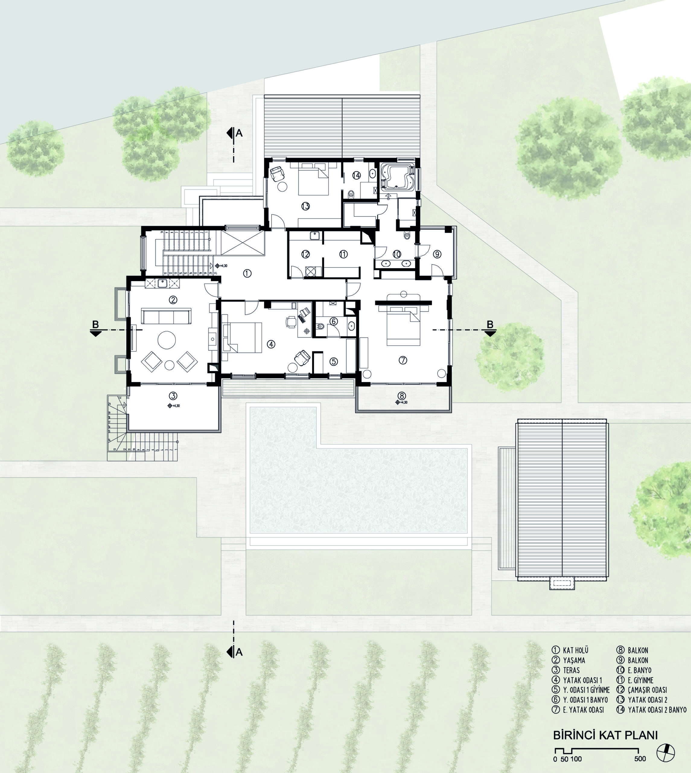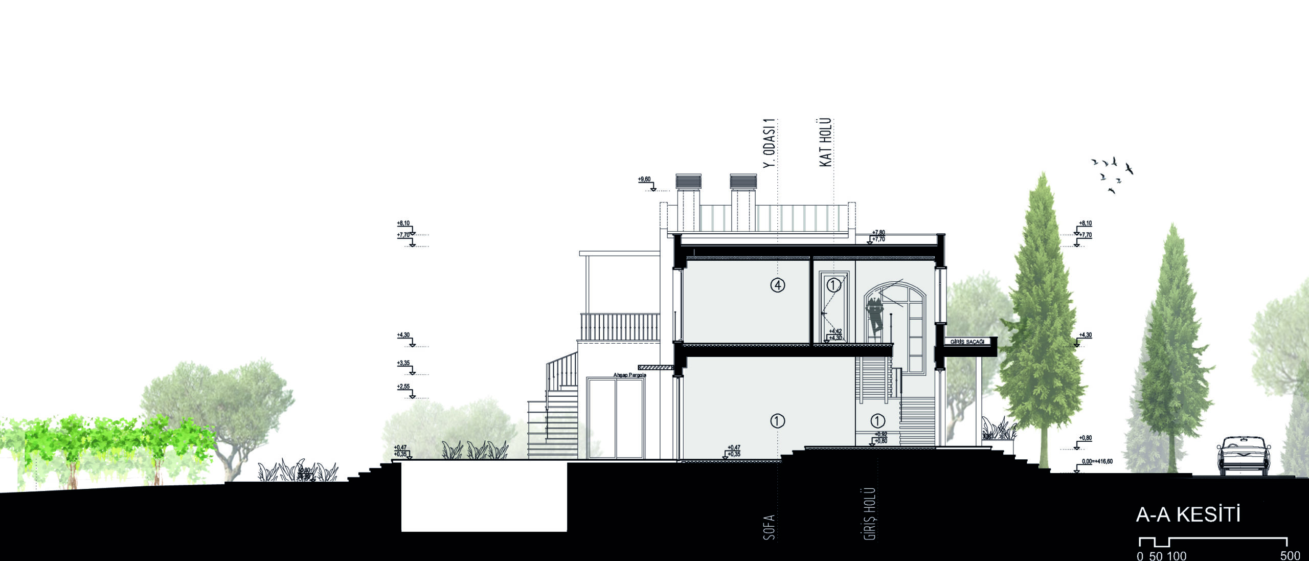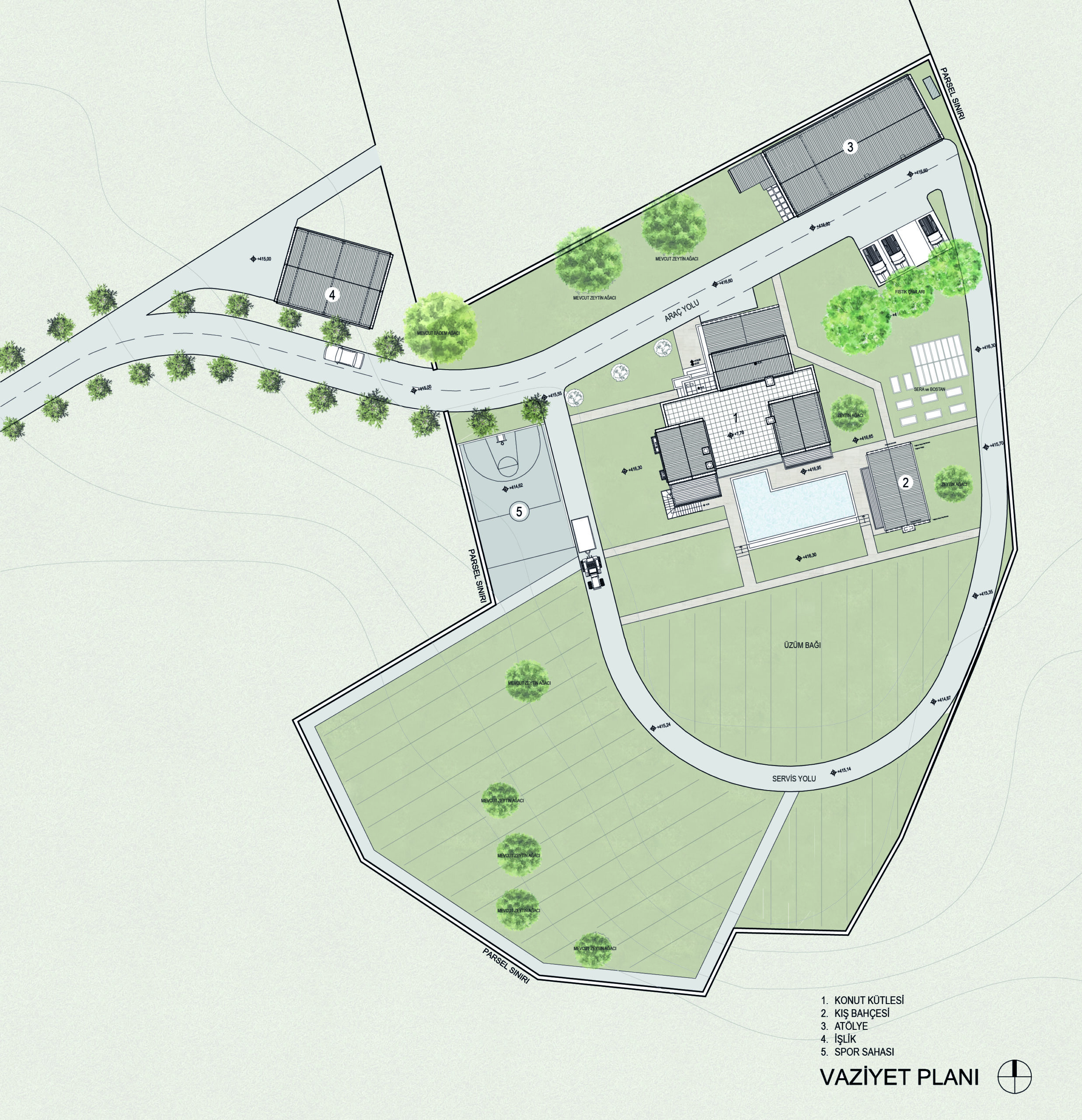 Projenin yoğun ihtiyaç programı kütlesel olarak büyük hacimleri gerekli kılmakta idi. Proje arazisi her ne kadar köy dokusunun dışında konumlansa da bu dokuya büyük hacimlerle eklemlenmek yerine parçacıl ve kendi sistemini kuran, etrafını da beraberinde kurgulayan bir kütle organizasyonu tercih edildi.