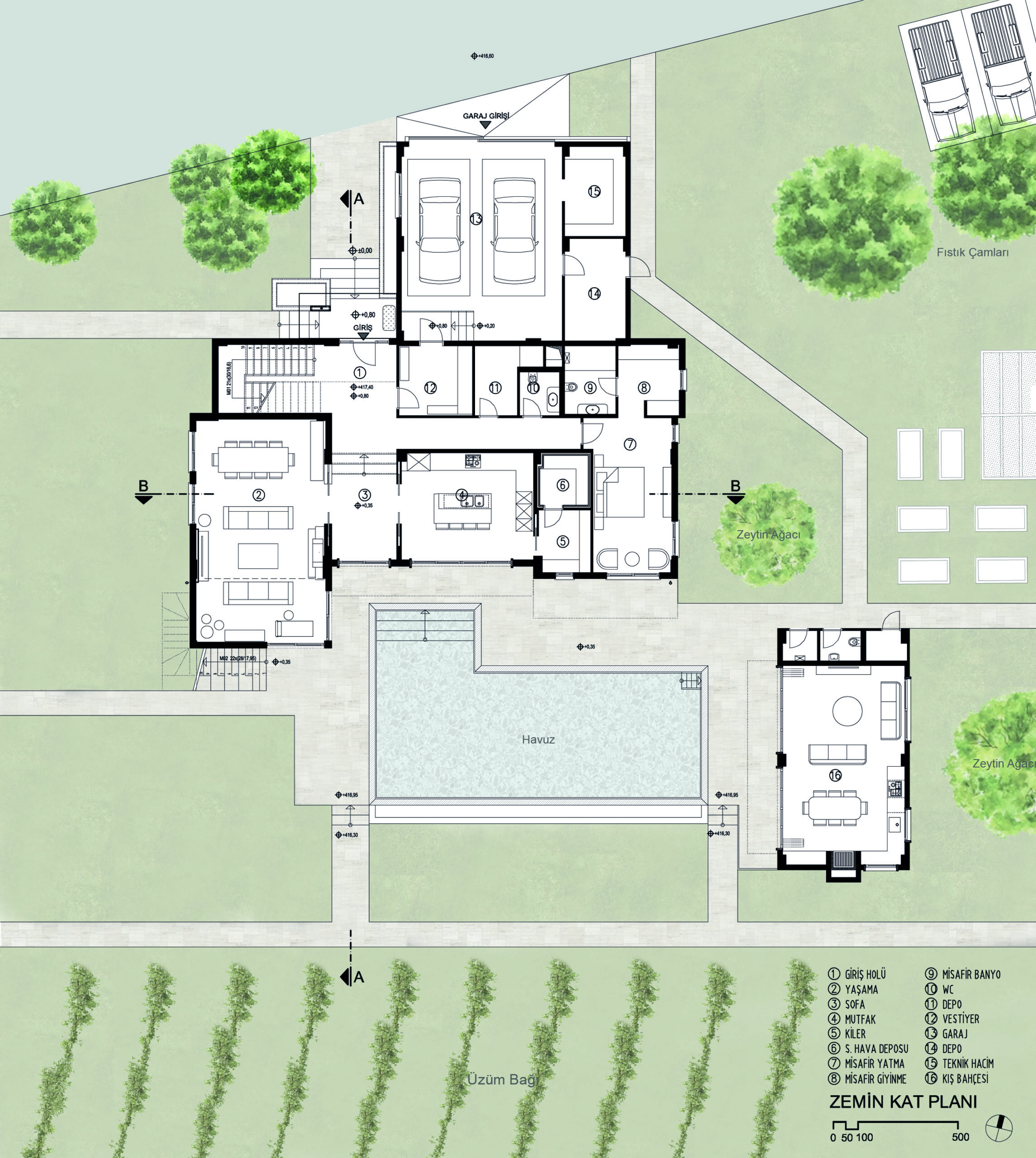 Bağ evi salt bir konut işlevinden öte bünyesinde barındırdığı atölye, işlik, sarnıç, üzüm bağı gibi üretim alanları ile bir üretim çiftliği kampüsü niteliğinde.