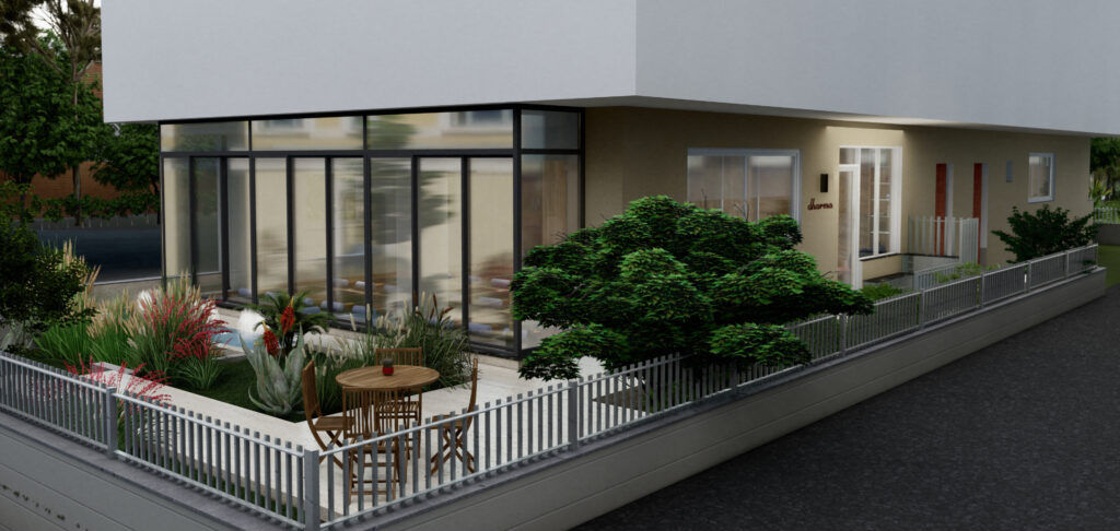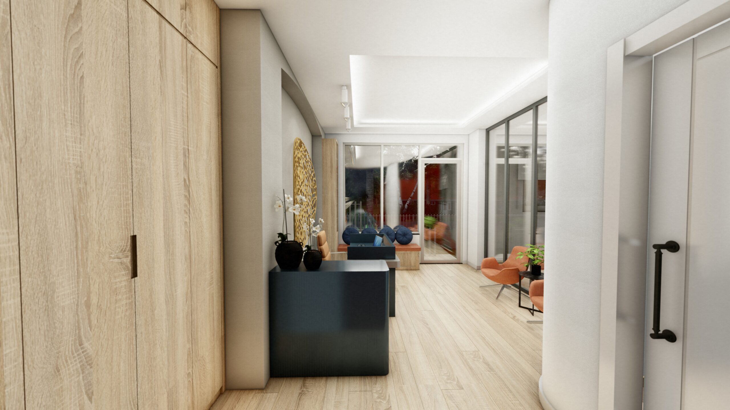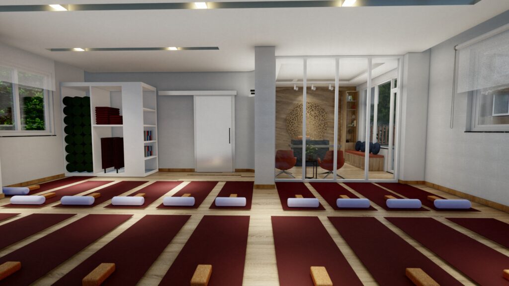 Bir konut bloğunun zemin kotundaki iki bağımsız konut biriminin birleştirilmesiyle oluşturulan yoga stüdyosunda, iç mekân ve peyzaj birbirini tamamlayan bir bütün olarak tasarlandı.